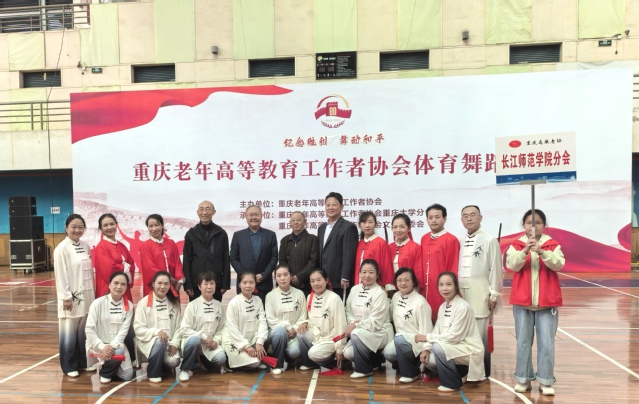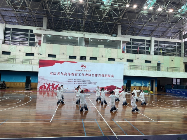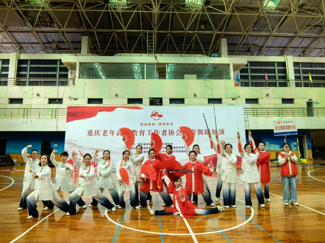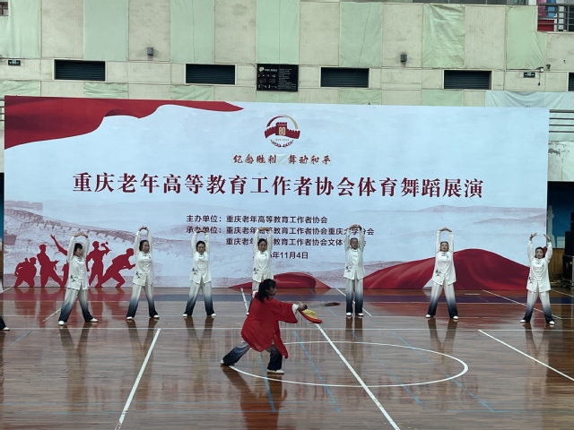 为隆重纪念中国人民抗日战争暨世界反法西斯战争胜利80周年,重庆老年高等教育工作者协会于2025年11月4日上午在重庆大学A区风雨操场举办了“庆祝胜利舞动和平”主题体育舞蹈展演。我校老年高等教育工作者分会积极响应协会号召,精心编排的节目《中华武术串烧——太极刀剑拳扇》在展演中精彩亮相,并获得广泛好评。