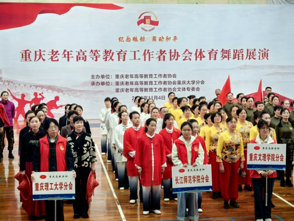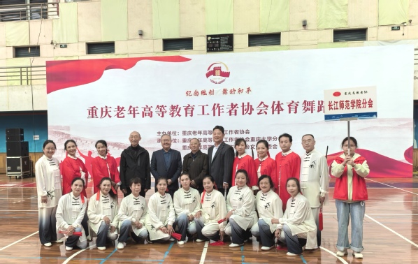 为隆重纪念中国人民抗日战争暨世界反法西斯战争胜利80周年,重庆老年高等教育工作者协会于2025年11月4日上午在重庆大学举办了“庆祝胜利舞动和平”主题体育舞蹈展演。我校老年高等教育工作者分会积极响应协会号召,精心编排的节目《中华武术串烧——太极刀剑拳扇》在展演中精彩亮相,并获得广泛好评。