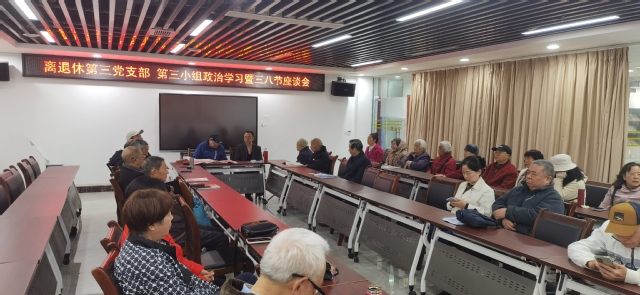 3月10日,离退休第三小组组织召开学习两会精神暨庆祝“三八”节座谈会,老同志们交流学习体会,共话学校发展。
